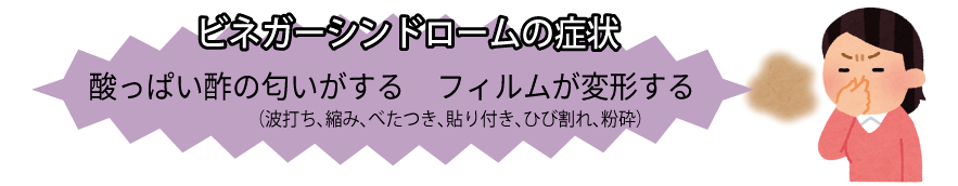 ▲周辺資料への影響▲ : 発生した酢酸ガスは、他のフィルムや紙資料の劣化を促進します。