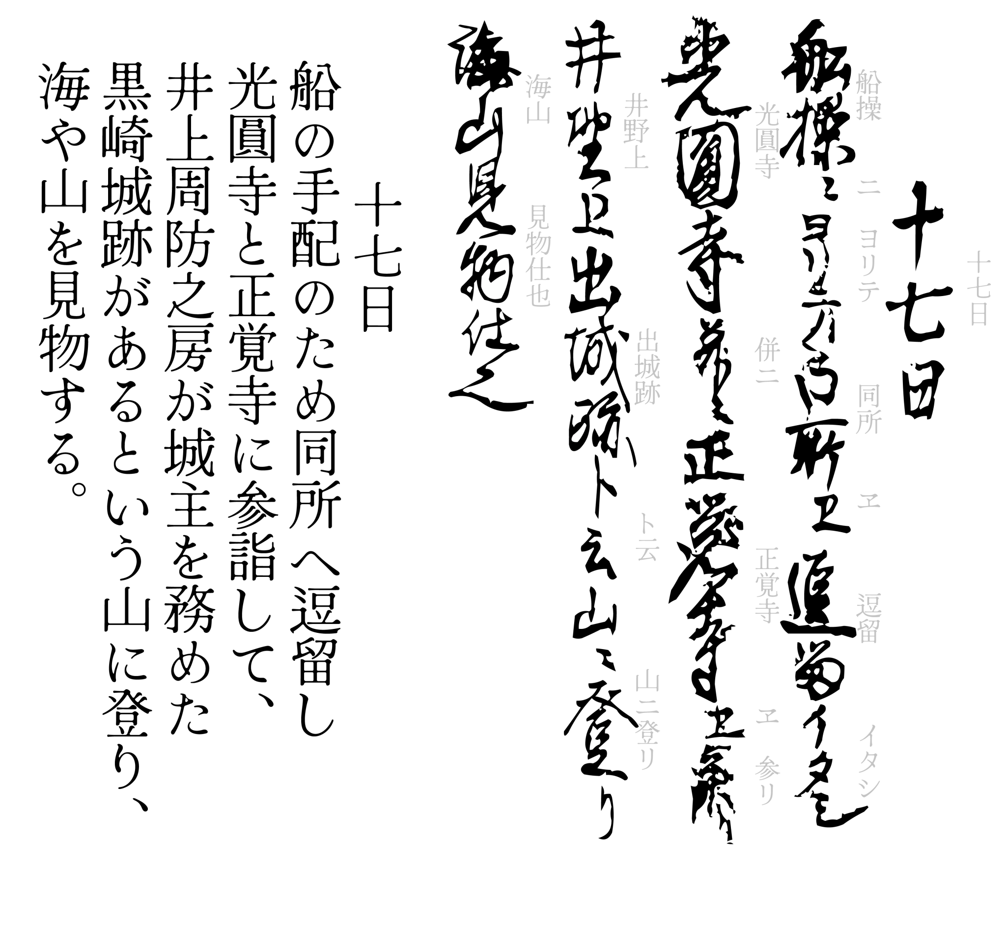 船の手配は時間がかかるようで、黒崎に逗留することになった旅の御一行。船を待つ間、お寺や城跡など黒崎ゆかりの地を見物してまわったようです。日記にある「井上周防之房が城主を務めた黒崎城跡があるという山」は「城山(じょうやま)」のこと。標高は約70メートルとそれほど高くはありませんが、今でも洞海湾や黒崎の街並みを見渡せる展望スポットとしても知られています。